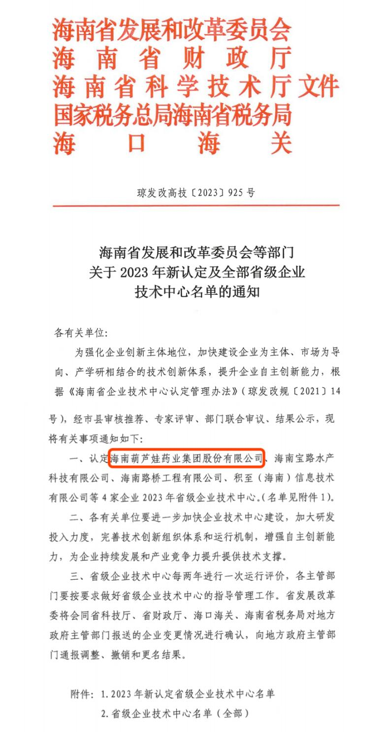 近日,海南省发改委等多部门联合公布了《关于2023年新认定及全部省级企业技术中心名单的通知》,其中,海南PT视讯药业集团股份有限公司成功通过评审,被认定为省级企业技术中心,是本次获批的4家企业之一。